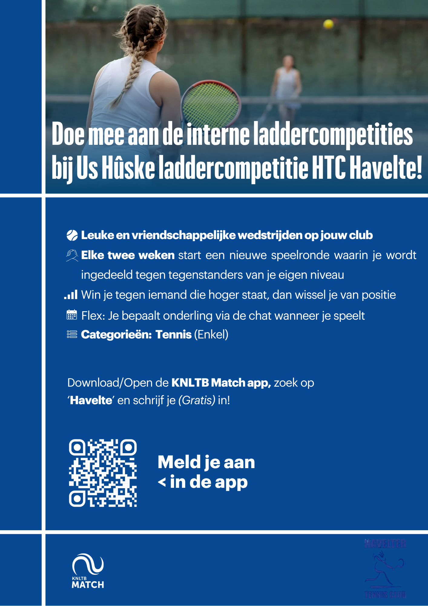 Heb jij zin in een leuke en sportieve uitdaging? Doe dan mee met de Us Hûske laddercompetitie HTC Havelte bij onze club en ga enkelen!